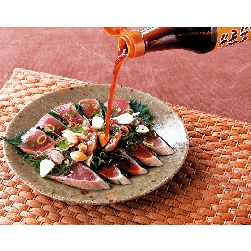 ガツンとにんにく風味がきいたぽん酢です。かつおのたたきや鍋のつけたれにおすすめです。